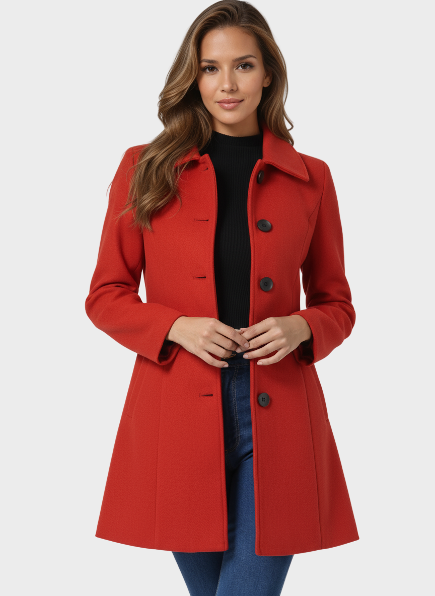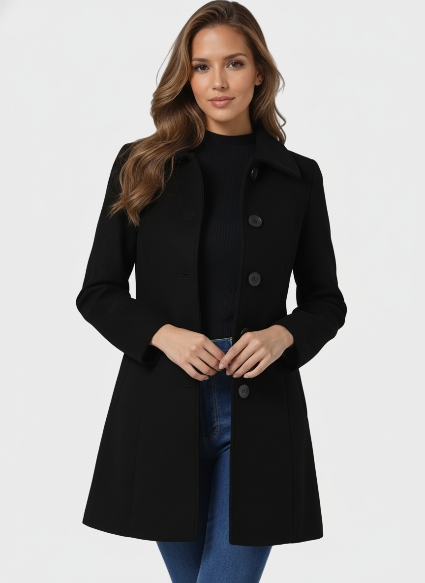 Implică-ți colecția de haine exterioare cu acest superb palton pentru femei, croit și evazat, cu nasturi în față. Acest palton combină o croială mulată cu o siluetă evazată elegantă, oferind nu doar stil, ci și confort pentru orice ocazie 👗💃.