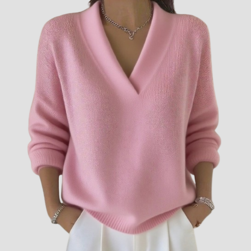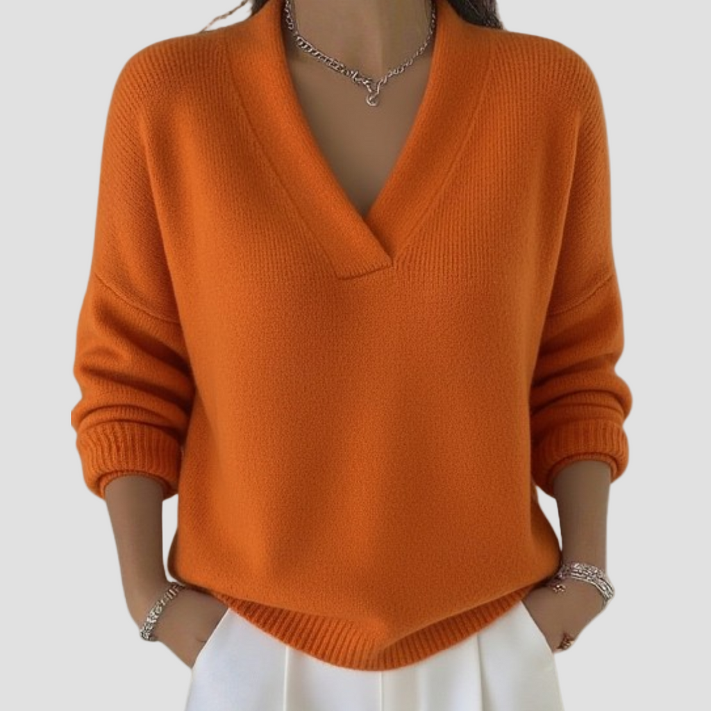 Puloverul Noor redefinește eleganța confortabilă printr-o combinație de materiale moi și un design atemporal. Cu un decolteu în V elegant și o croială lejeră, asigură un aspect elegant, perfect pentru serviciu sau relaxare în weekend.