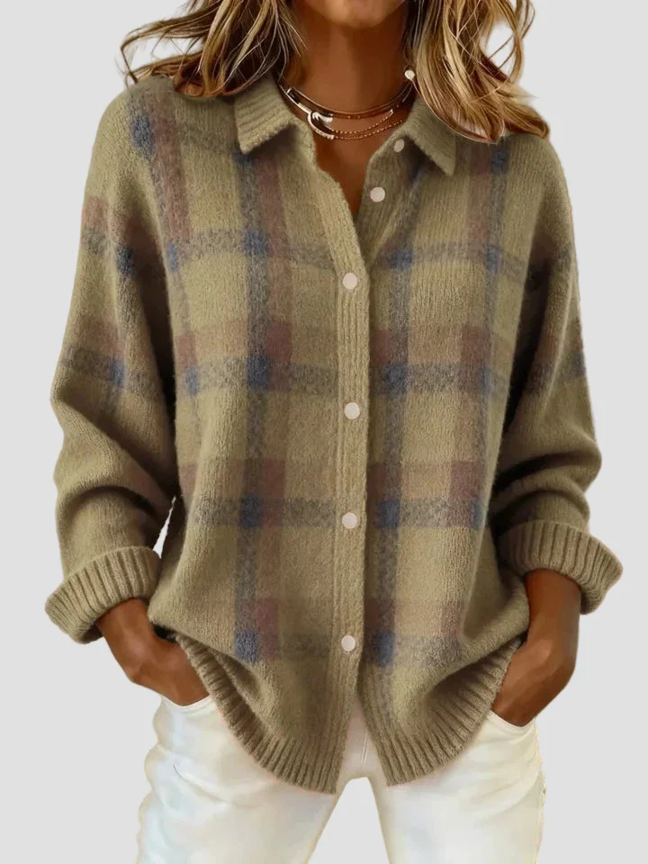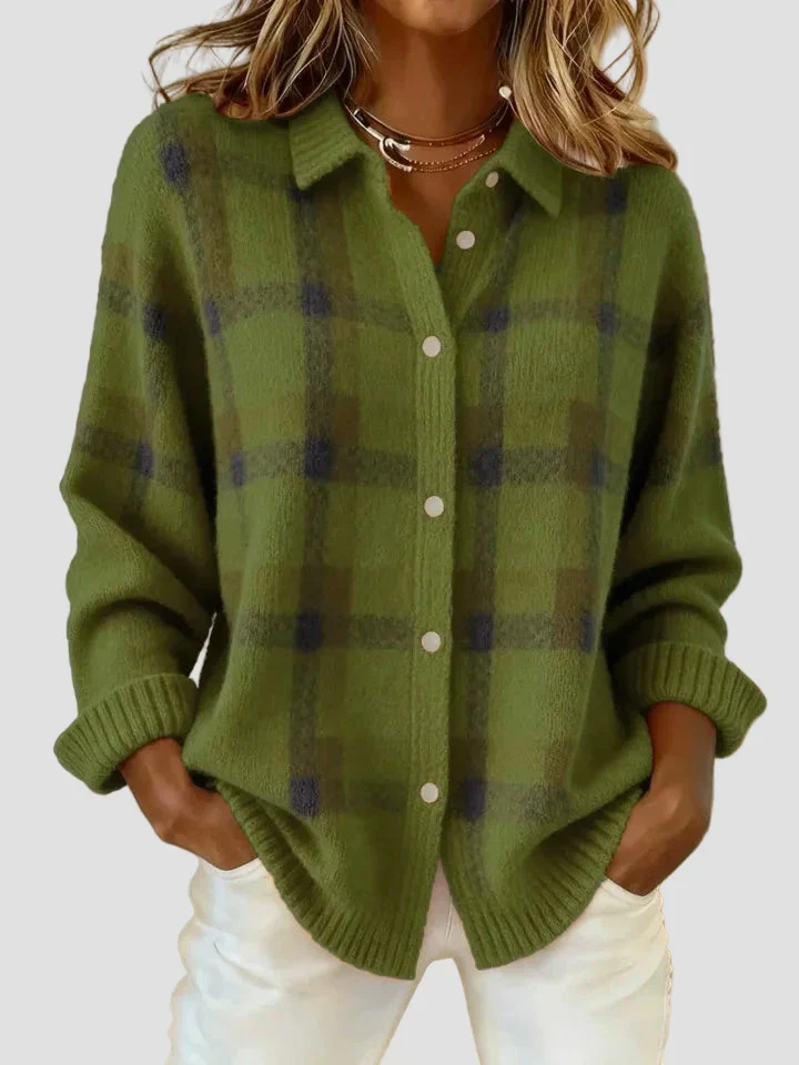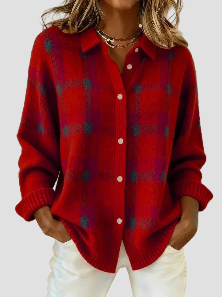 Cămașa Anna este perfectă pentru zilele în care îți dorești confort, dar nu vrei să sacrifici stilul. Materialul moale, ușor ciufulit, se simte ca un pulover moale, în timp ce gulerul și închiderea cu nasturi îi conferă cămășii Anna un aspect modern. Modelul în carouri la modă adaugă o notă de stil ținutei, iar croiala lejeră, cu un tiv ușor rotunjit, se potrivește frumos băgată în pantaloni sau lejeră în jurul taliei.
