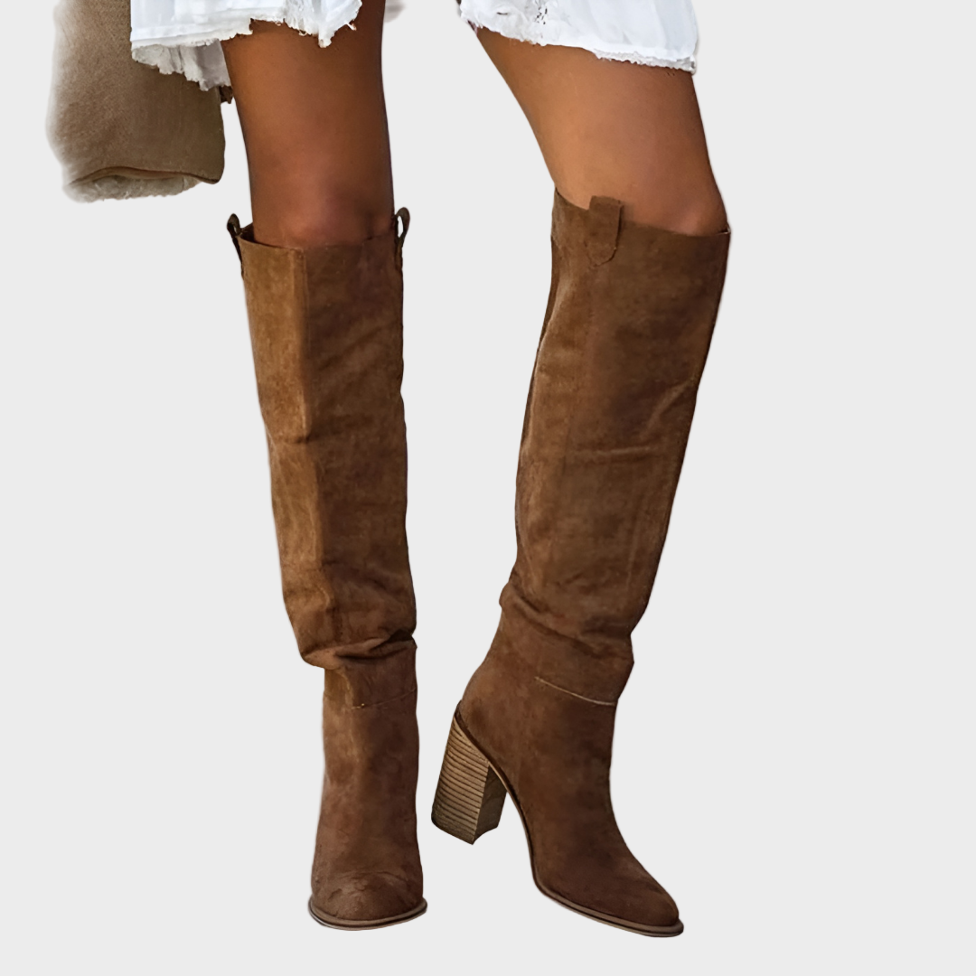 • Cizme înalte din piele întoarsă pentru femei
