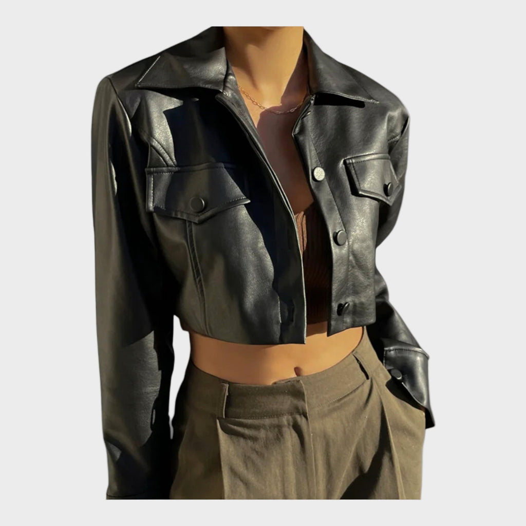 Jachetă modernă din piele, cu o croială elegantă și o eleganță atemporală