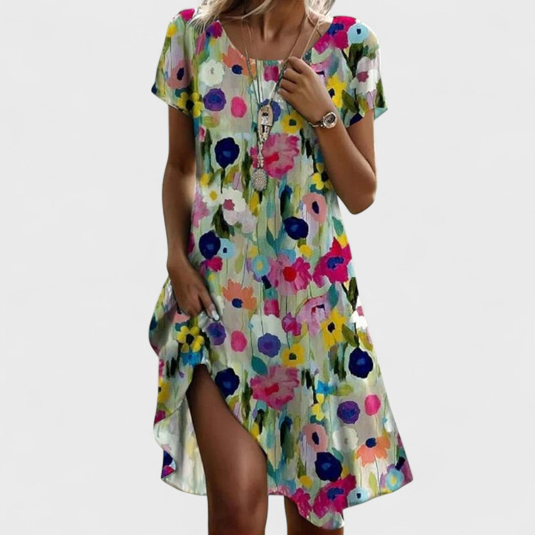 Rochia Eva te va încânta cu imprimeul floral superb și materialul moale, care arată elegant și este în același timp extrem de confortabil. Croiul lejer, cu talia definită, oferă o senzație naturală de libertate și feminitate. O alegere excelentă pentru un picnic de primăvară, o cafea cu prietenii și seri romantice de vară.