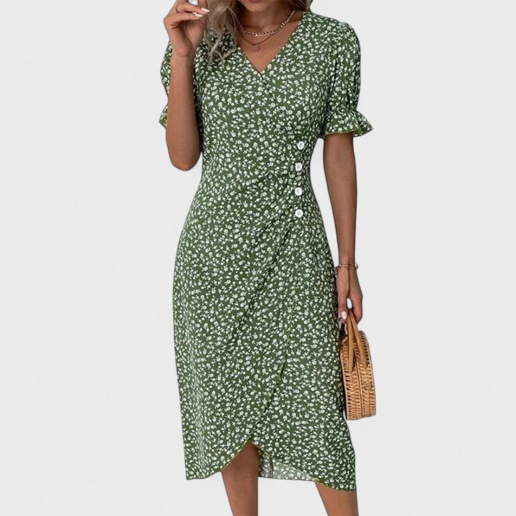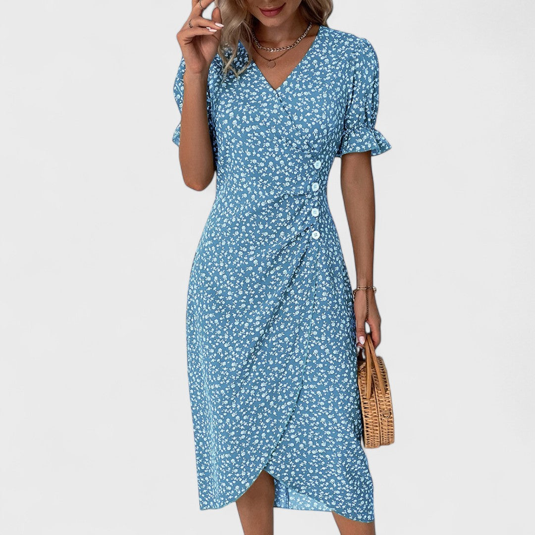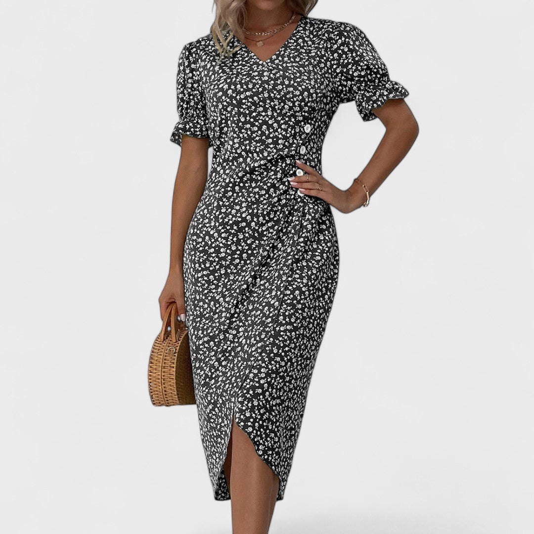 Rochia Irena combină un model floral delicat cu o croială sofisticată care acoperă ușor burtica și oferă confort și încredere purtătoarei. Materialul ușor se mulează frumos, în timp ce croiala atemporală și detaliile subtile vor susține farmecul natural la fiecare pas. Alegerea ideală pentru zilele de vară pline de stil și confort.