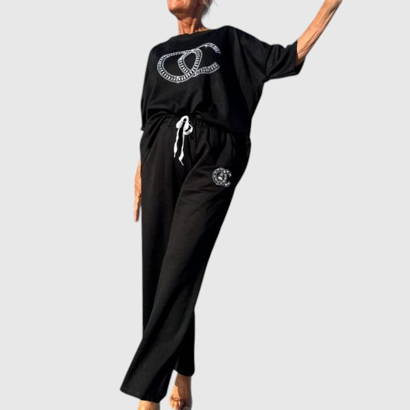 Simte-te relaxată și elegantă cu acest set care combină confortul, simplitatea și eleganța atemporală . O alegere practică și la modă pentru a-ți completa ținuta de zi cu zi.